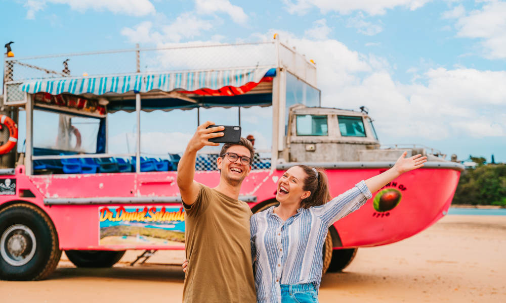 Spend part of your afternoon exploring the gorgeous 1770 region aboard Larc's iconic pink amphibious vessel. Transitioning from the road to water with ease you can see the best of the region from the best seat in the house. The 1-hour tour kicks off in the mid to late afternoon, just in time to chase the sun as it goes into hiding to signal the end of another day. Crossing the Southern Great Barrier Reef's Round Hill Creek and travelling along the Eurimbula National Park coastline, you'll see the sea and sky transform from the vibrant, bright colours it reflects in the day to the pastel, dreamy tones it presents in the evening.