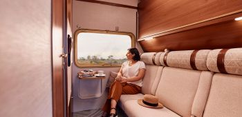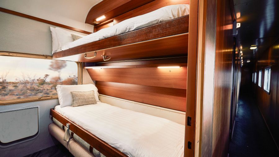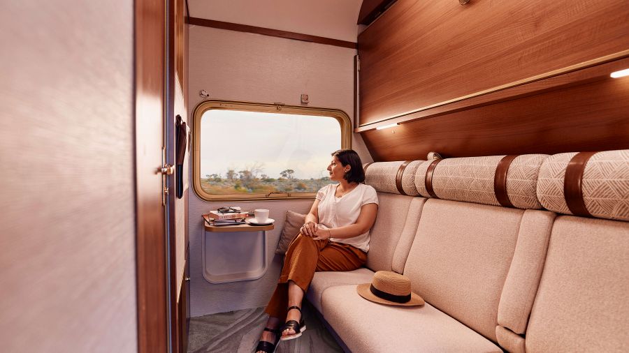 Gold Premium is more than a cabin – it’s a new style of travel, with premium inclusions. It starts with the contemporary design of the accommodation, where the colour palette draws inspiration from the rich colours of Arrernte painter Albert Namatjira’s stunning landscapes.
