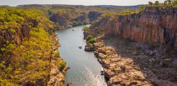 As you glide southward in your luxurious cabin, appointed in the rich palette of the landscapes that inspired Albert Namatjira's iconic paintings, you'll discover the true spirit of the outback. Stop to explore the ancient landscapes of Katherine Gorge and immerse yourself in the living Indigenous culture at Nitmiluk. In Alice Springs, savour an unforgettable dinner under the stars at the historic Telegraph Station, while the mysterious underground world of Coober Pedy reveals its opal-mining heritage.