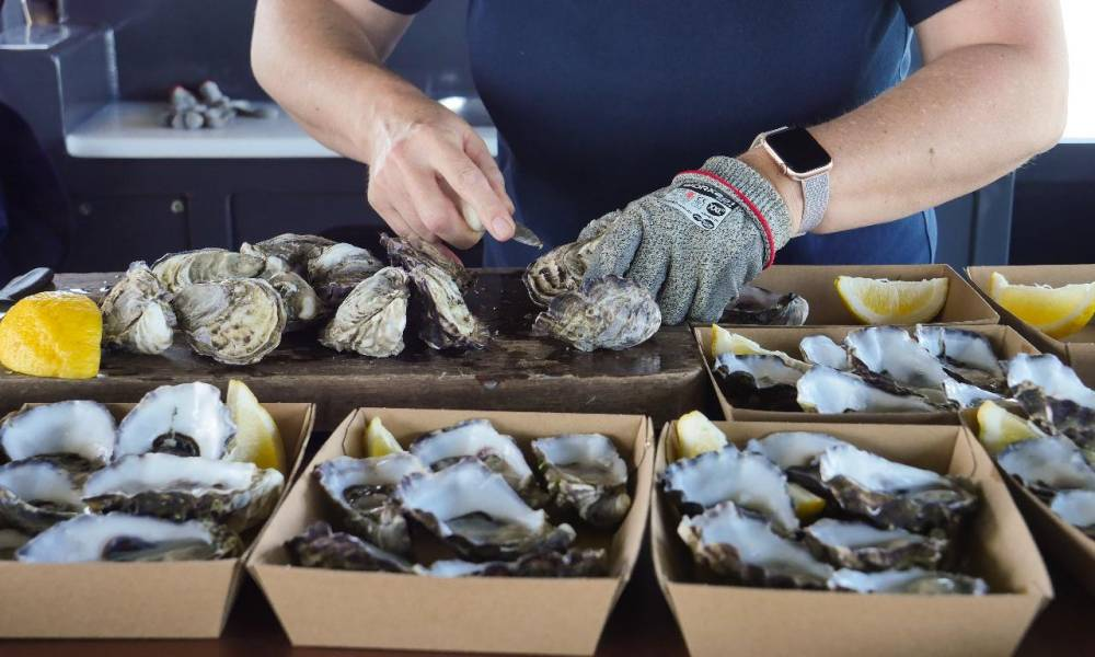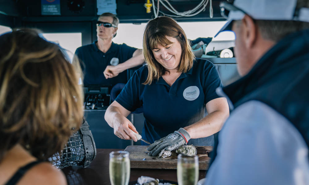 Choice of tour with 6 freshly harvested and shucked oysters or choice of tour with no oysters included