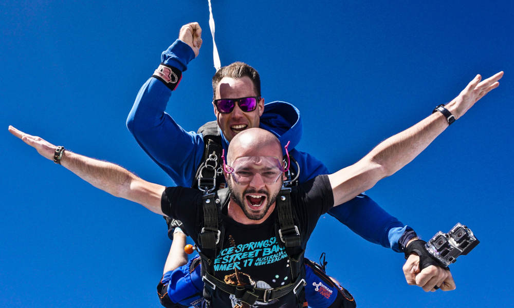 After getting to know your tandem instructor, gearing up in our top of the range equipment and posing for a few photos as part of your video package, you'll be ready to get the adrenalin pumping!