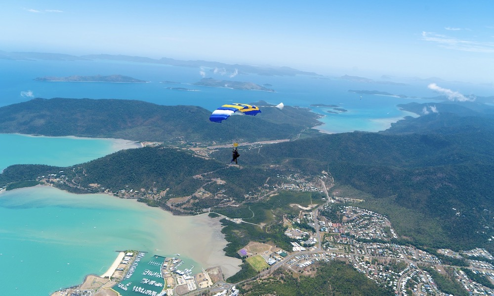Fall to the sight of the stunning Whitsunday Islands with this up to 15,000ft tandem Airlie Beach skydive! Book your dive online today!