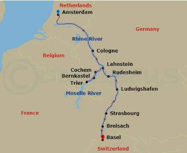 Embark on a captivating European journey that begins with flights from Australia to Amsterdam, where you'll enjoy 2 nights exploring the city's iconic canals and vibrant culture. Then, set sail on an 11 night river cruise through the heart of Europe, tracing the legendary Rhine and Moselle rivers from Amsterdam to Basel. Discover Cologne’s charming Old Town and sample its famous Kölsch beer, explore medieval castles in Lahnstein and Cochem, and marvel at Trier’s Roman heritage. Cruise through the picturesque Moselle Valley and the dramatic Rhine Gorge, dotted with fairytale castles. Enjoy wine tastings in Bernkastel and Rüdesheim, stroll through Strasbourg’s enchanting La Petite France, and visit Heidelberg’s romantic castle. After disembarking in Basel, spend 1 night soaking in its Swiss charm before continuing to Zurich for 2 nights of alpine elegance