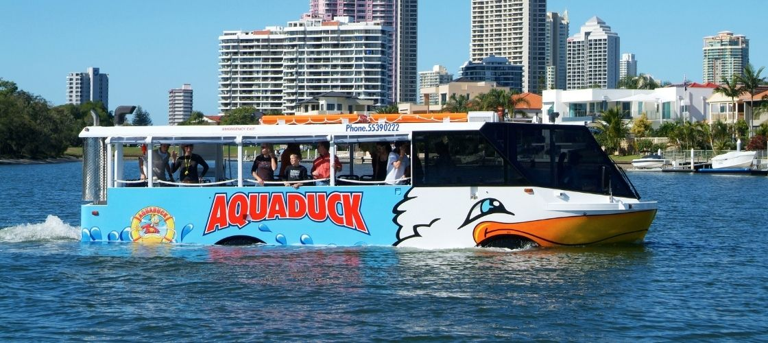 Experience Gold Coast's Surfers Paradise by land & sea with Aquaduck! Enjoy Aquaducks entertaining commentary, & watch while your kids get to drive!