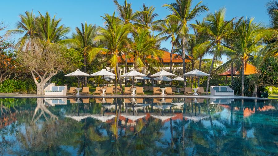 Taste and tipple anytime, anywhere at this all-inclusive oasis, a paradise on one of Nusa Dua’s best beaches. Want for nothing with all-day dining – including free-flow drinks wherever you land – whether it’s at a shady table, poolside at Surfer’s Corner, indulging in authentic Japanese at Genji or enjoying beachside bliss at Ayodya Beach Club & Grill.