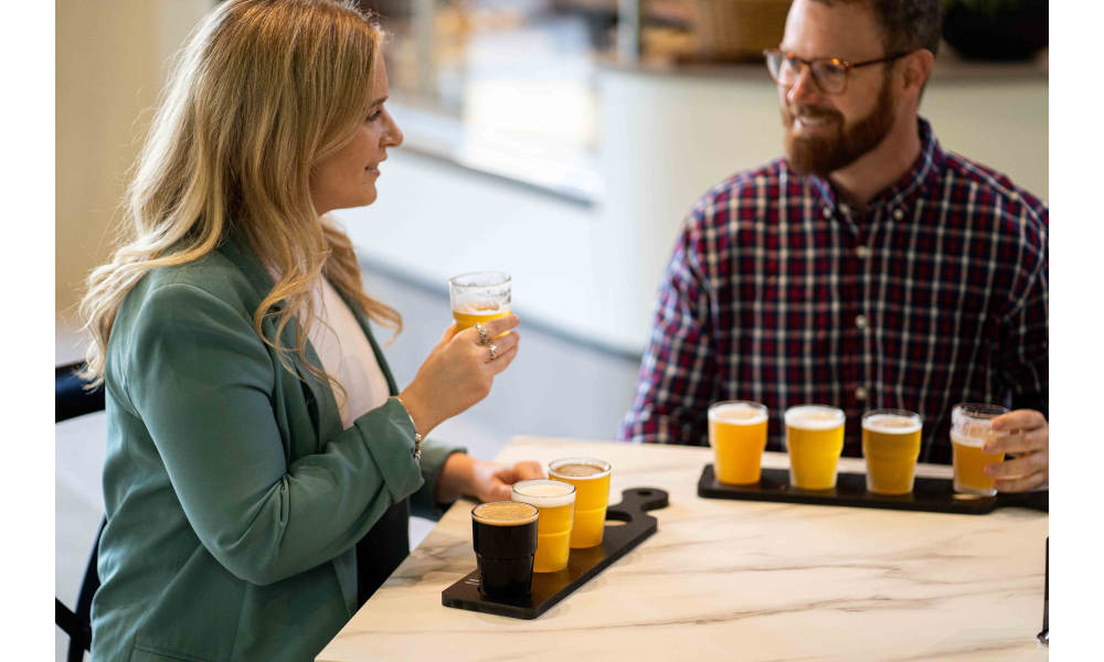 Love to try new beer? This Grunthal Beer Paddle experience lets you and a friend or partner choose any four beers from their extensive selection of taps and even includes a couple of cheese-tasting tiles to enjoy at the same time. Pick the four styles you want to try from a crisp lager, an easy-drinking session ale, an approachable pale ale, a smooth stout, a fruity XPA, a juicy hazy NEIPA, a seasonal Nitro, a balanced Sour and Cloudy Apple Cider; whatever floats your boat we're sure to have it! Plus, get the endorphins flowing with a selection of local and international cheeses served on a tasting tile alongside your beer. Is there a better match? And, if that isn't enough, take home two Grunthal craft beer four-packs for you to enjoy as and when you like.