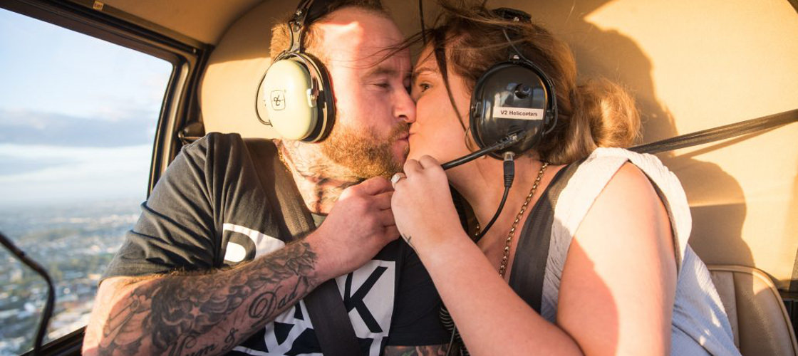 The colours of the sun setting against the Brisbane City skyline add a layer of romance to the proceedings as the scenery glitters below your helicopter.