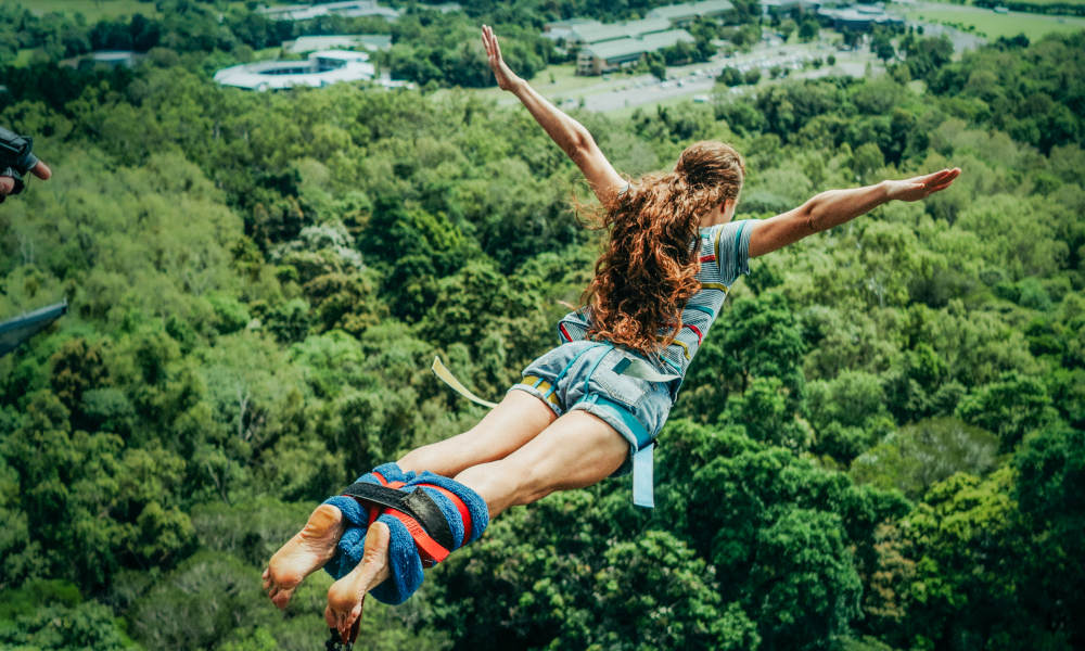 Are you ready for one of the most essential Cairns adrenaline experiences available? This Cairns bungy jumping thrill is one of the iconic rushes in Australia for adrenaline junkies, and offers 16 different jump styles as you plummet from the 50m high bungy tower towards the awaiting tropical ground below! Join your friendly and supportive hosts and ascend to the top of the tower - where you'll have spectacular views over the rainforest and out to the Great Barrier Reef as your heart begins to pump - then you'll be counted down 5..4..3..2..1.. BUNGY! Launch yourself from the top to the awaiting ground below as gravity takes effect and you feel more alive than ever before.