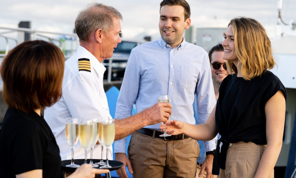 You will be welcomed on board with a refreshing pre-dinner drink. With your glass charged, stroll the interior or exterior decks and admire the view as the sky, filled with thousands of sparkling stars. Your journey takes you deep into the heart of Trinity Inlet and across the waterfront precinct of Cairns, from the Cruise Liner Terminal to the Esplanade.