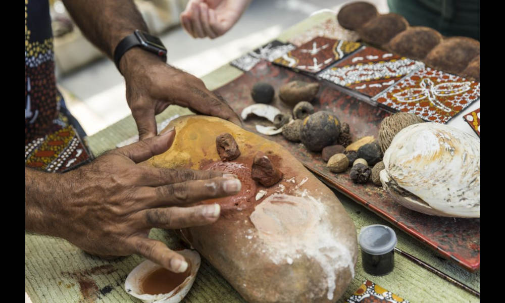 Explore how Dreamtime stories about animals, the environment, and language are expressed through cultural art. Binna will