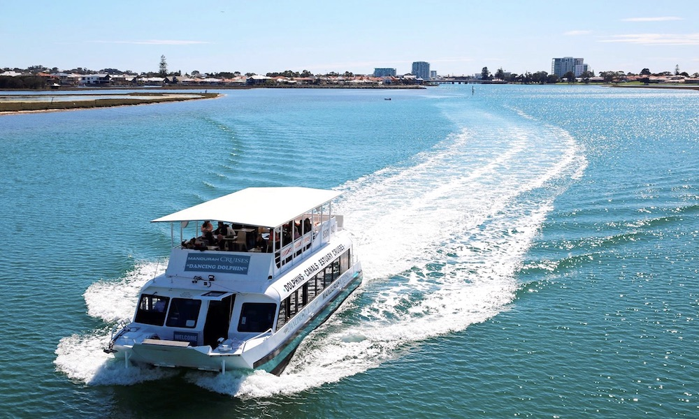 Cruise around the waters of the Mandurah region in Western Australia with this Dolphin and Scenic Marine Cruise. With the 1 hour and 15 minute experience, you'll cruise along the canals to spot wild dolphins playing the water while admiring the beautiful views of the region. There are around 75 to 100 bottlenose dolphins living in the waters off Mandurah and this cruise is the perfect way to get up close to them.