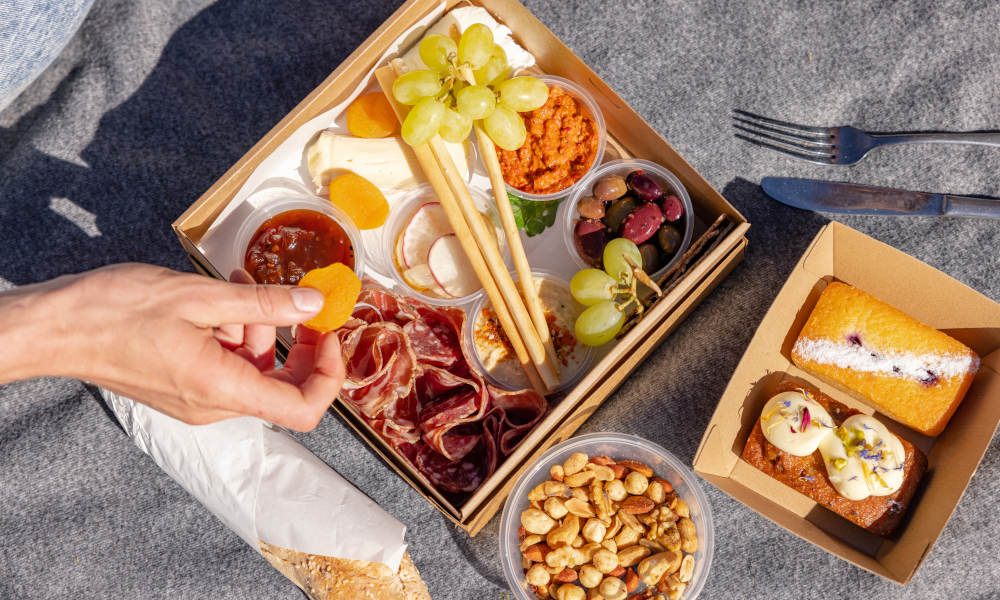 Throw down a picnic rug and enjoy a farmers lunch for 4 including local beer, cider, estate-grown wine, antipasto boxes and delicious cakes for dessert.