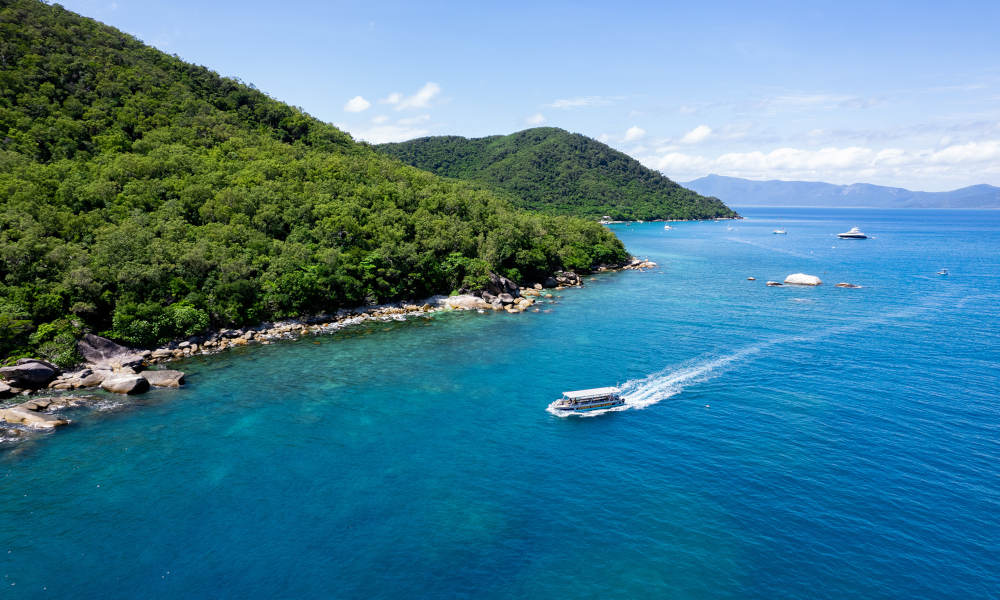 Fitzroy Island is an idyllic 339-hectare island, with extensive rainforests and a big beautiful fringing coral reef. It is a relaxing 45-minute ride in our 190-seat air-conditioned Fitzroy Flyer from Marlin Wharf (Cairns) to the sheltered waters of Fitzroy Island.