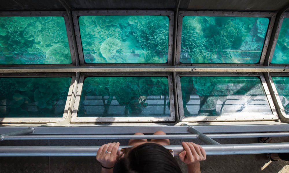 A leisurely cruise in our glass bottom boat Coral Viewer over the fringing reef that surrounds Fitzroy Island viewing the reef environment with talk.