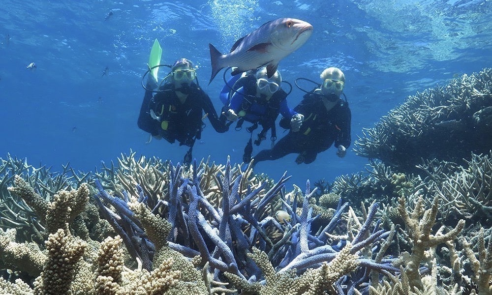 The Port Douglas reef tour will dock at the spacious reef activity platform where you join a semi-submersible tour, go snorkelling and sit in the underwater observatory and marvel at the marine life swimming on by. The friendly and attentive crew, including professional marine biologists, are on hand to ensure you gain the most from your day out on the Barrier Reef. Exciting optional activities such as introductory and certified diving, helmet diving, marine biologist guided snorkel tours and scenic helicopter flights can be booked on the day. And, a delicious tropical buffet lunch is included while you are out on the reef.