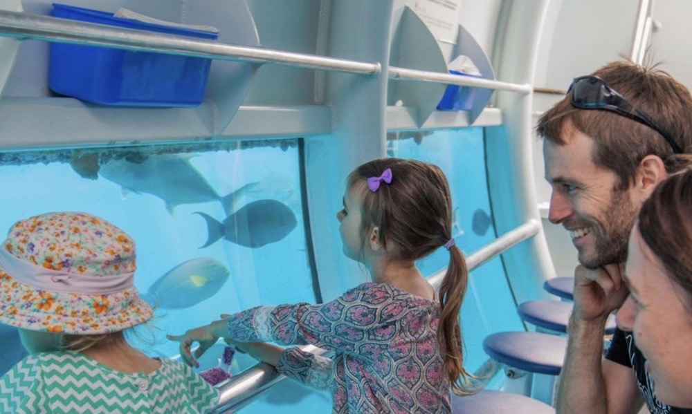 Departing from the Cairns, guests will travel approximately 54 kilometres in our air-conditioned catamaran to Moore Reef Pontoon on the Outer Great Barrier Reef, which is perfectly positioned and fully equipped so that any age or ability can fully experience the beauty of the reef with its abundance of colourful coral, fascinating fish, turtles & more. 4 Hours on the reef allows plenty of time to experience all of our free inclusions such as snorkelling, the Sunlover waterslide - the only waterslide on the Great Barrier Reef, glass bottom boat, an ocean enclosed pool for the kids, underwater observatory and fish feeding experience