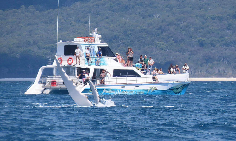 Cruise the sheltered waters of Hervey Bay to the Great Sandy Marine Park which is renowned as the playground for visiting humpback whales as they migrate south to the Antarctic waters. Expert commentary from your skipper will educate and inform you about the unique aspects of whale watching in Platypus Bay which is formed by Fraser Island and the mainland. Hervey Bay is world renown and recognised as the first accredited Whale Heritage Site by the World Cteacean Alliance.