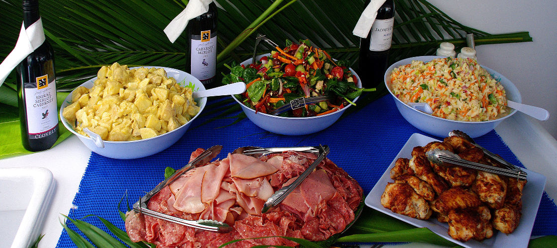 Your delicious plated lunch is served while watching whales play near the boat. It consists of a warm bread roll, 2 cold meats, hot chicken wings, 3 salads: coleslaw, potato salad & green salad.