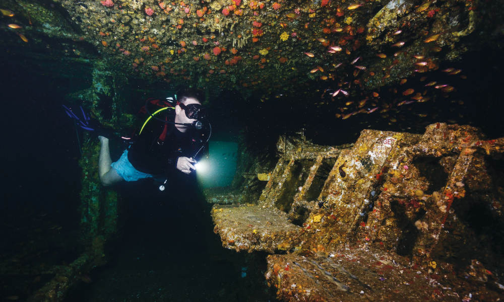 Dive one of the world’s top shipwrecks, the ex-HMAS Brisbane, off the Sunshine Coast.