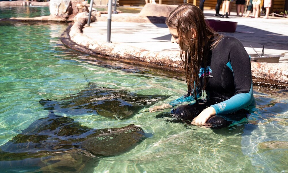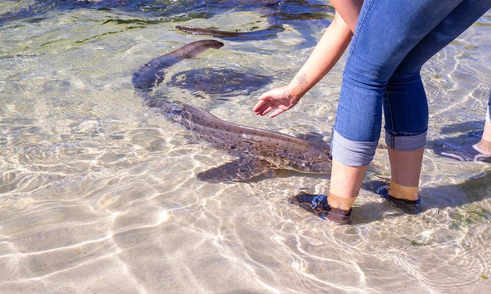 Wade into the shallows and get to know and hand feed the curious creatures at the Irukandji Shark & Ray Aquarium in Port Stephens.