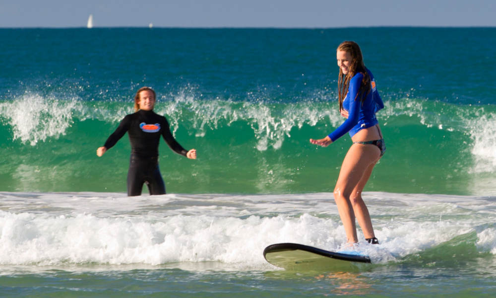 The Go Take The Drop surf lesson package includes 1 x 2 hour surf lesson plus all equipment on the famous Broadbeach.