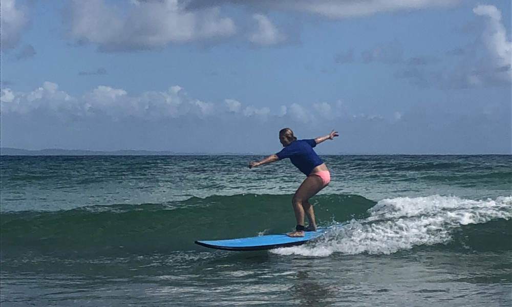 Lear to surf Rainbow Beach in waist deep water with friendly instructors that are highly experienced and fully qualified to get you surfing and having fun in a safe, uncrowded environment. We guarantee you will stand up on your first learn to surf lesson!