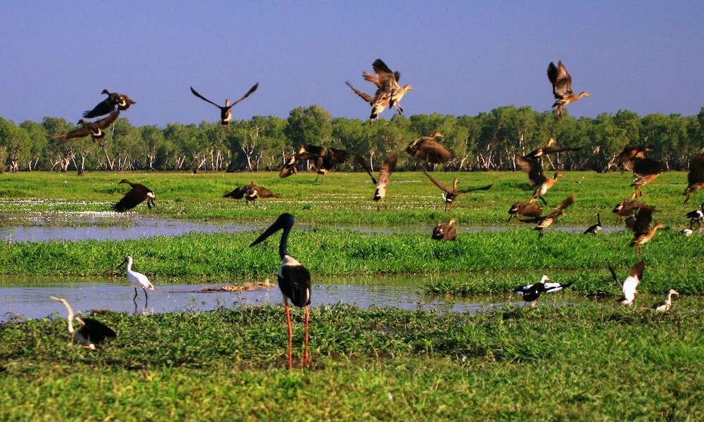 Within minutes of Darwin a pristine wetlands teaming with wildlife can be found. Discover the secrets of the Top End on a 1 day tour to the Corroboree Billabong with visits to the Fogg Dam Conservation Reserve, the magical ‘Window of the Wetlands’ and a relaxing afternoon Mary River Wetlands cruise. Travellers will set out from Darwin at 9am to Fogg Dam Conservation Reserve and see what was once a rice growing project in the 1950’s now transformed into a haven for local and migratory birds. You will also have the opportunity to capture some amazing photos of the Sacred Lotus and Native Lilies here. The interactive displays at the ‘Window of the Wetlands’ Visitor Centre provide insight into the ecological process and seasonal changes of the wetlands and a view of the Adelaide River floodplains that should not be missed on the way to the Corroboree Billabong.