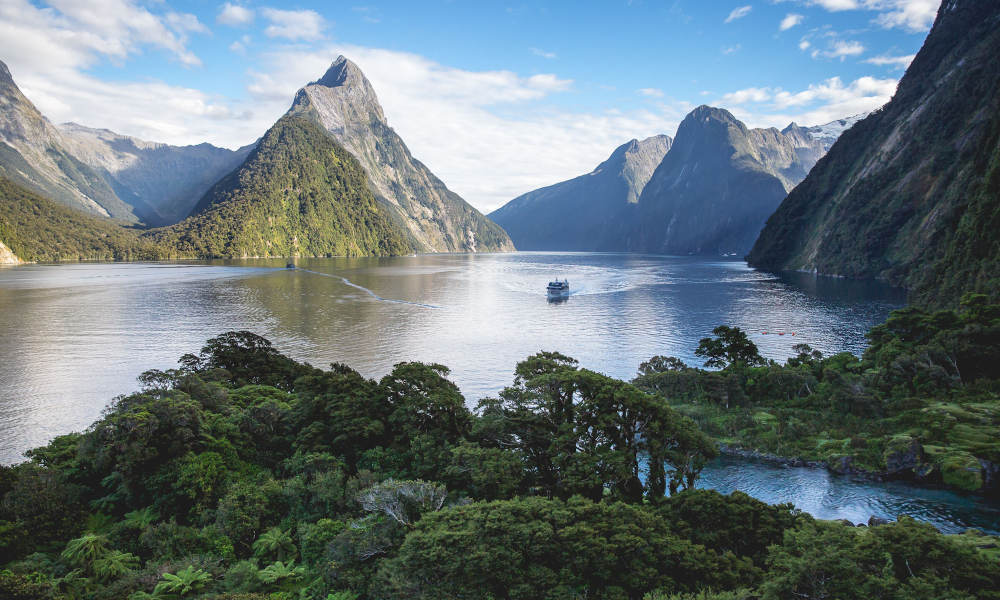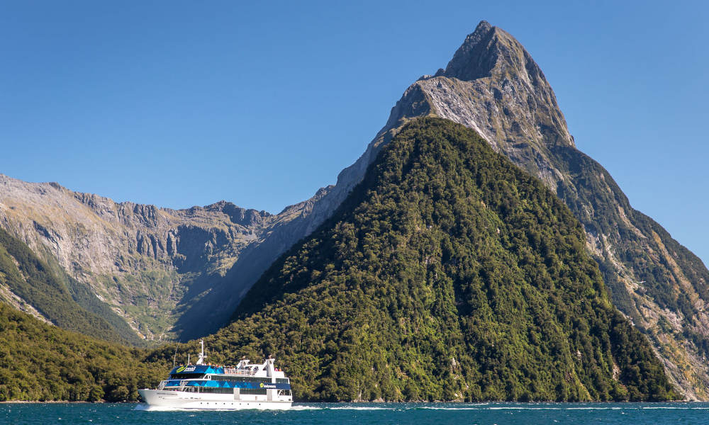 Cruise the beautiful Milford Sound on board a purpose-built sightseeing vessel. Departing from Te Anau, you'll travel to the departure point at Milford by a glass roof coach before boarding the boat.