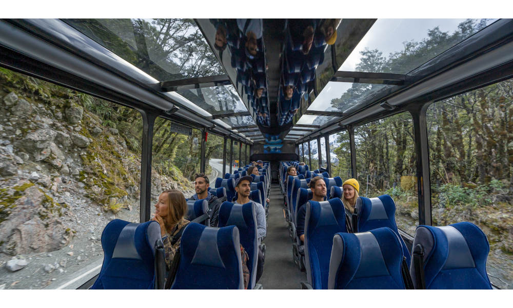 Cruise around the stunning Milford Sound in Fiordland with this 1-hour 40-minute cruise with transfers from Queenstown. The journey begins by boarding the comfortable coach in Queenstown and winding through the region en route to Milford. The bus has giant windows and a glass roof, so you'll be treated to incredible views of the region as you're driven around.