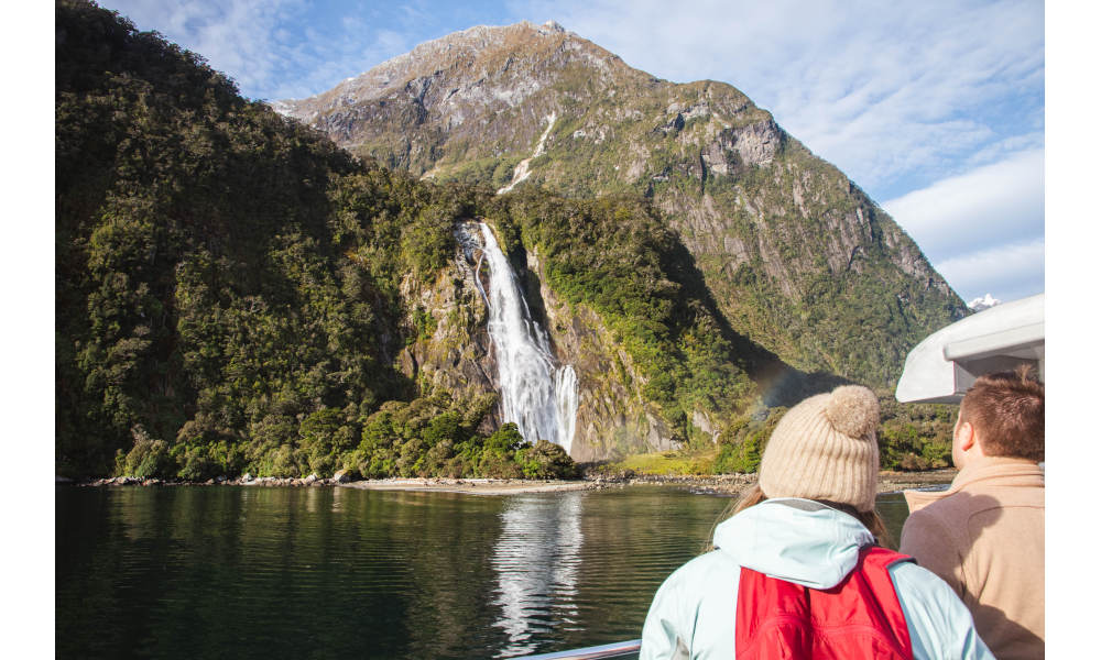 In Milford Sound, we embark on a stunning two-hour small boat nature cruise, where guests can see waterfalls, fur seals, and occasionally dolphins, accompanied by insightful commentary from a local guide. We also visit off-the-beaten-track locations away from the crowds.