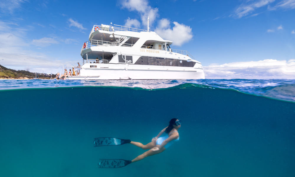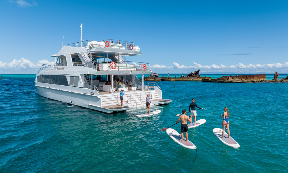 Set sail with See Moreton and encounter dolphins, snorkel the Tangalooma Wrecks, enjoy white sand beaches and satisfy your appetite with a buffet lunch.