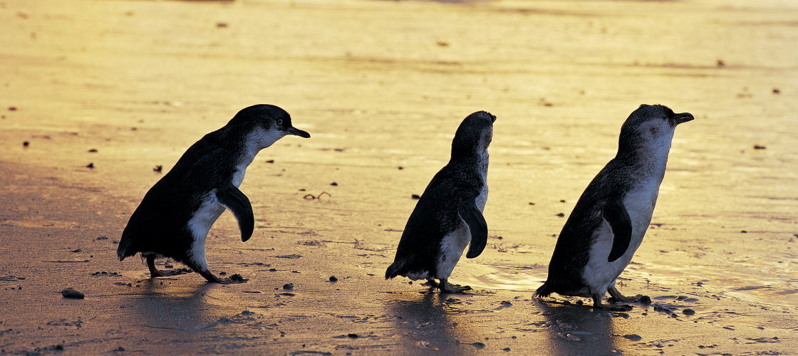 Watch Little Penguins dash across the sand at sunset with a visit to the Penguin Parade. Then explore the boardwalks after dark to see, smell and hear Little Penguins in the colony returning home to their burrows, greeting neighbours and their chicks. While you’re here, make sure you keep an eye out for other local residents including Swamp Wallabies, Eastern Barred Bandicoots, Cape Barren Geese and Short-tailed Shearwaters.
