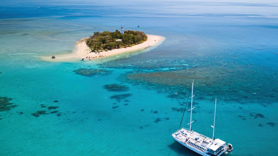 Board Wavedancer, a 30-metre luxury sailing catamaran to commence a full day cruise to the Low Isles. Journey to this idyllic coral island set in a lagoon on the Great Barrier Reef for the opportunity to swim, snorkel, drift through the corals or take a glass bottom boat tour.