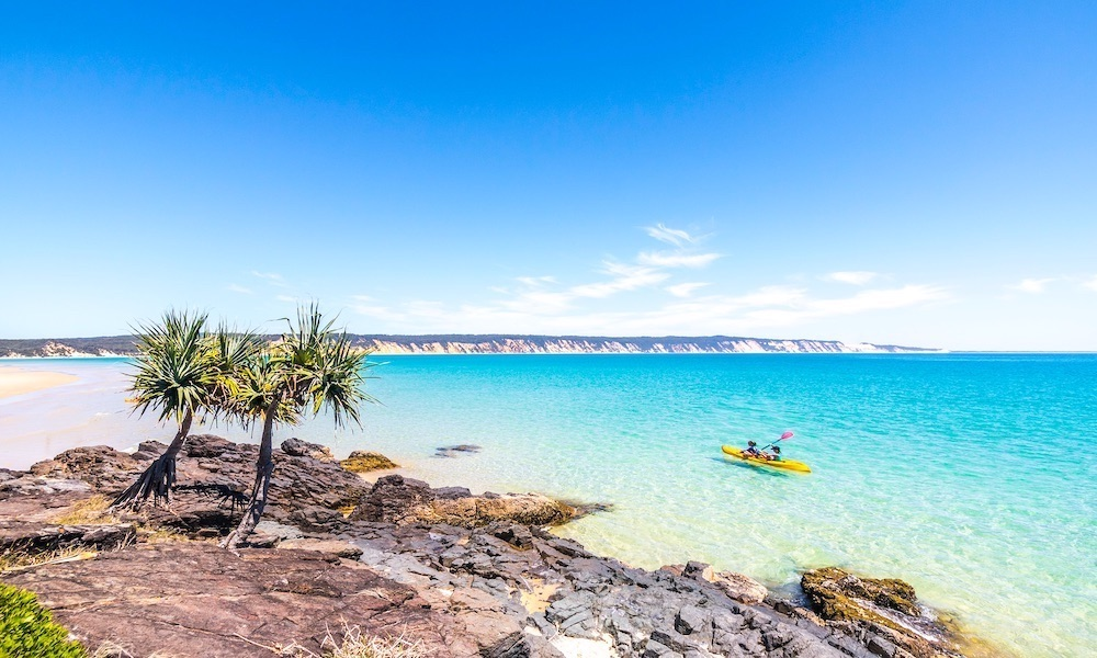Immerse yourself in the views and natural beauty of Australia’s Nature Coast on a guided kayak tour whilst experiencing a buzzing hub of wildlife including Bottlenose dolphins, Humpback whales, turtles, rays and more in this tropical aquatic paradise. This location features scenic views of the Rainbow Beach Double Island Point is only accessible by 4X4 vehicles from Rainbow Beach around the low tide, its away from the crowds and into the heart of the Great Sandy National Park where many of the local and migrating wildlife can be experienced.