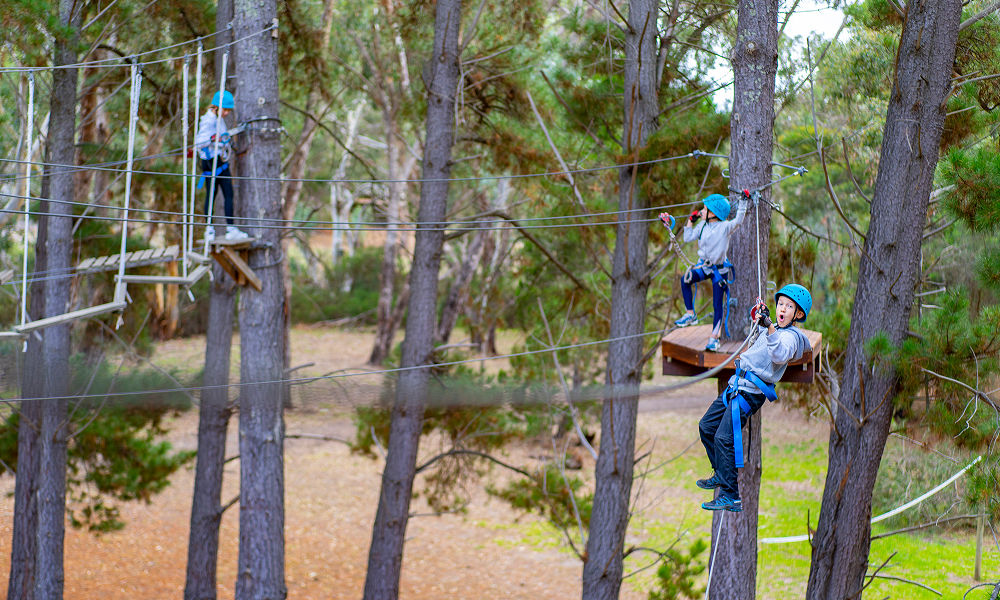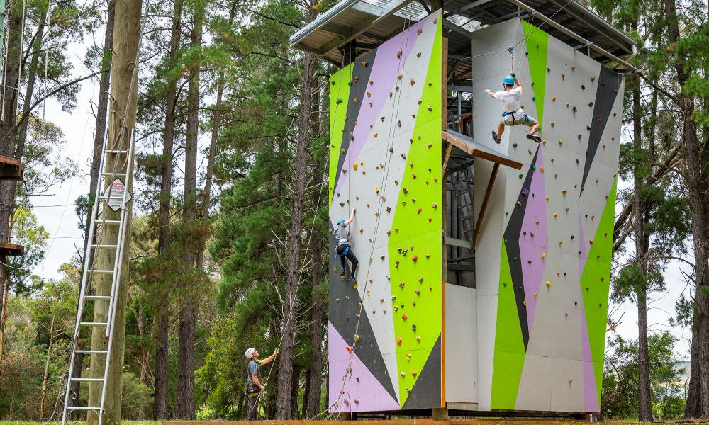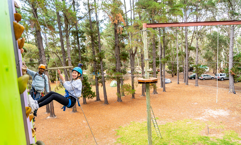 Tackle the high ropes course and rock climbing here at the Southern Adventure Hub in McLaren Vale, South Australia.