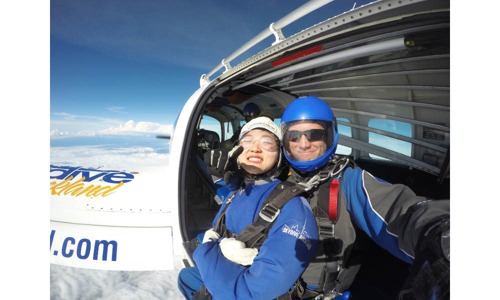 You will drive yourself to our base in Parakai, West Auckland. On arrival, our team will take you through a briefing, answering any questions you have and making sure you are ready for the experience of a lifetime. You will be paired up with an instructor, geared up in equipment and off you go! Capturing your experience with one of our personalised camera packages. Make sure you write a message on your hands! Your camera package (purchased separately) will include footage of you and your instructor on the ground, enjoying the scenic ride in the aircraft, your exit including your reaction as you leave the plane, 45 seconds of freefall (including any messages on your hands!), your parachute ride and your landing.