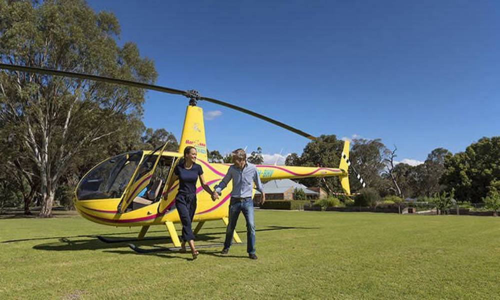 Enjoy an unforgettable and surreal experience that will see you, firstly, lift off from the tranquil Hoffnungsthal Valley by helicopter for a breathtaking flight northeast over Rowland Flat, home of Jacob’s Creek Winery.