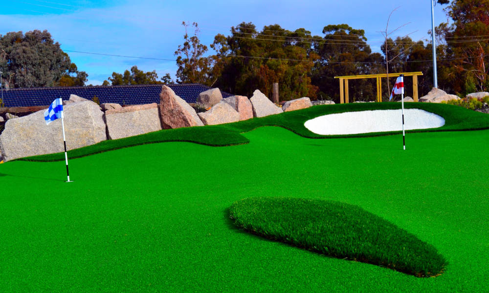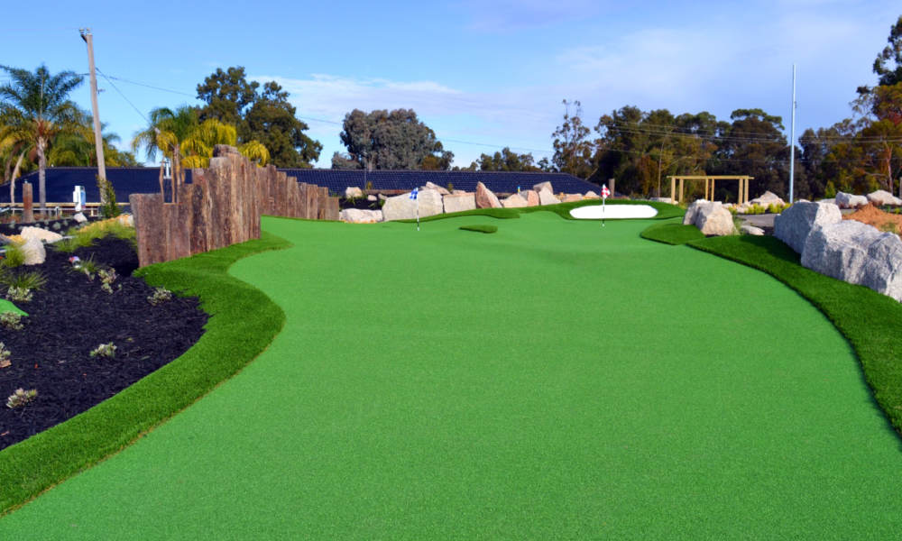 Sporties Mini Golf creates great entertainment and challenges for all ages with extensive landscaping providing exciting golf play.