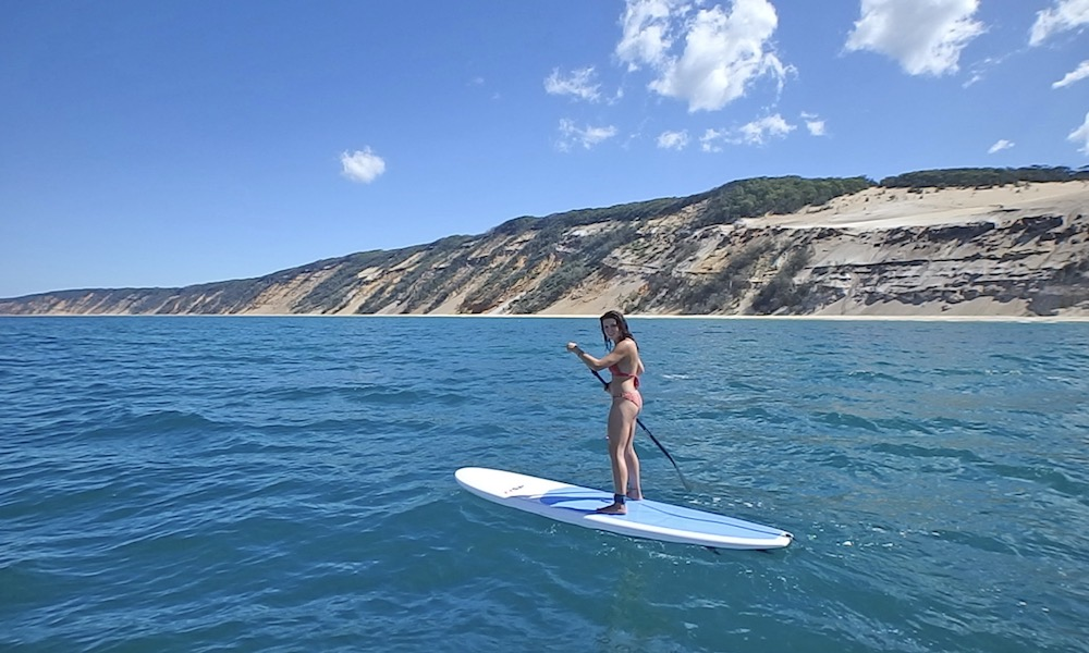Embark on a 3-hour stand up paddle boarding lesson at Double Island Point and Pelican Bay from Rainbow Beach on the Sunshine Coast. Book online today!