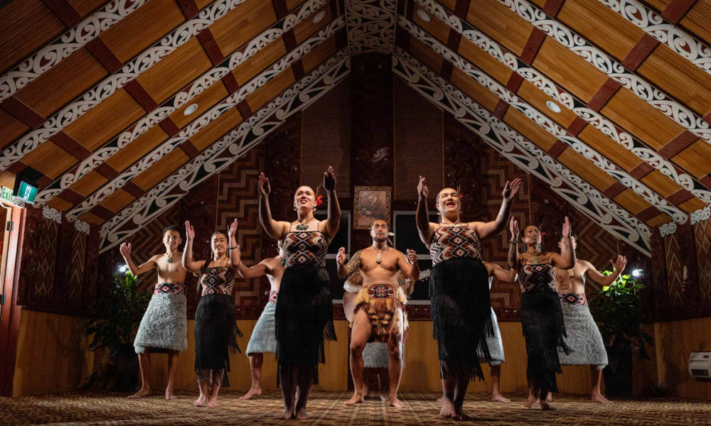 Be captivated by a cultural performance in our beautifully carved meeting house, Te Aronui a Rua. The performance includes a pōhiri (traditional Māori welcome), waiata (song), mōteatea (chant), poi, and haka.
