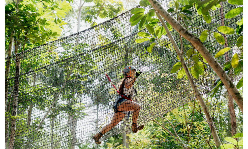 To complete our Adventure Park, abs are not necessary, but some fitness is required to complete the course as you do need the strength to climb through the trees. It takes approximately 30-45 minutes to complete a circuit, and 2.5 - 3.5 hours to complete the entire park. We use the highest grade safety equipment and our state-of-the-art smart belay system will keep you attached to the wires at all times.