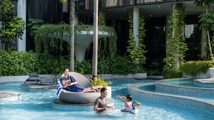 Village Hotel Sentosa offers an energetic, fun and vibrant stay for families. The 606-room hotel is decorated in sun-washed hues reflecting the natural surroundings and the sea. There are 4 unique themed pools and special recreational activities such as scavenger hunt, pool games, fitness classes and movie night by the pool are available in the hotel precinct ensuring that everyone has a fun-filled time.