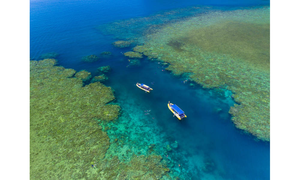 Explore the swirling sands of Hill Inlet beaches, lunch time in Hill Inlet, two snorkel destinations and Hill Inlet Lookout on the Northern Exposure tour.